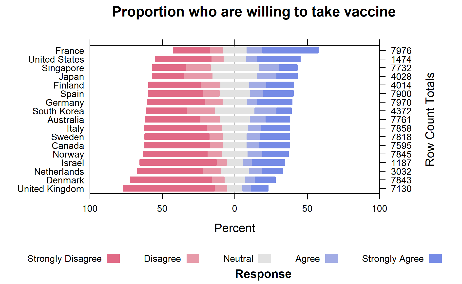 This post is a sub-module of the project and focuses on analysing countries’ attitudes towards COVID-19 vaccination. Data for the analyses is obtained from the Imperial College London YouGov Covid 19 Behaviour Tracker Data Hub.