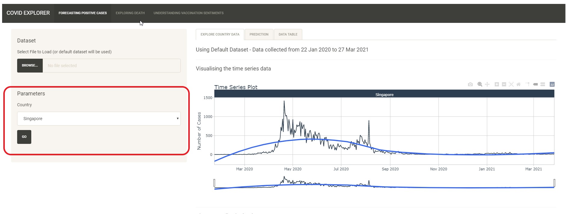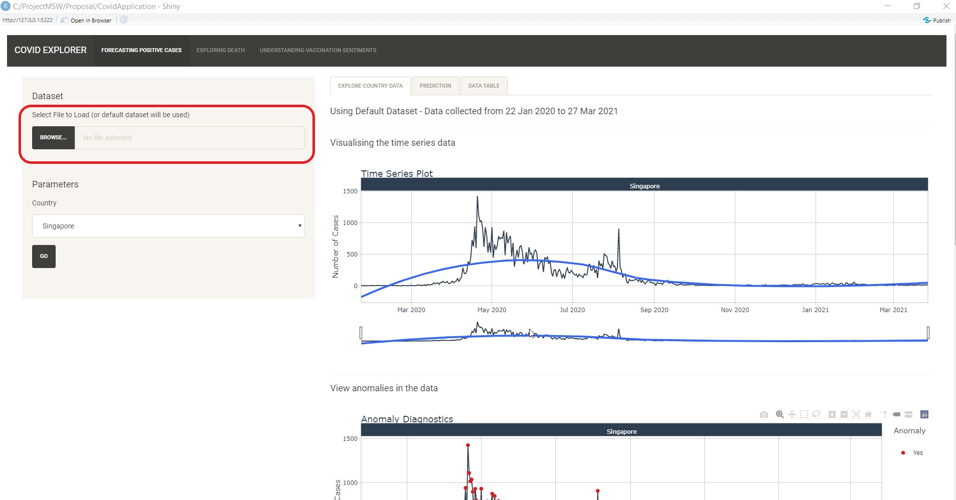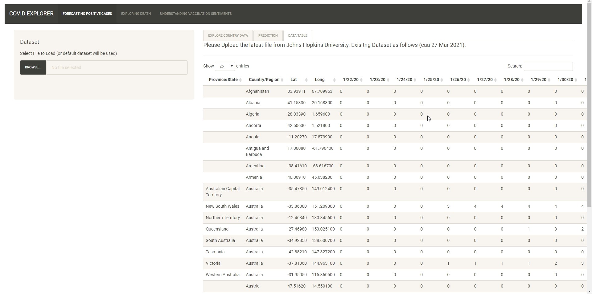 If user did not upload any dataset, the default dataset will be used (covid information caa 27 Mar 2021).