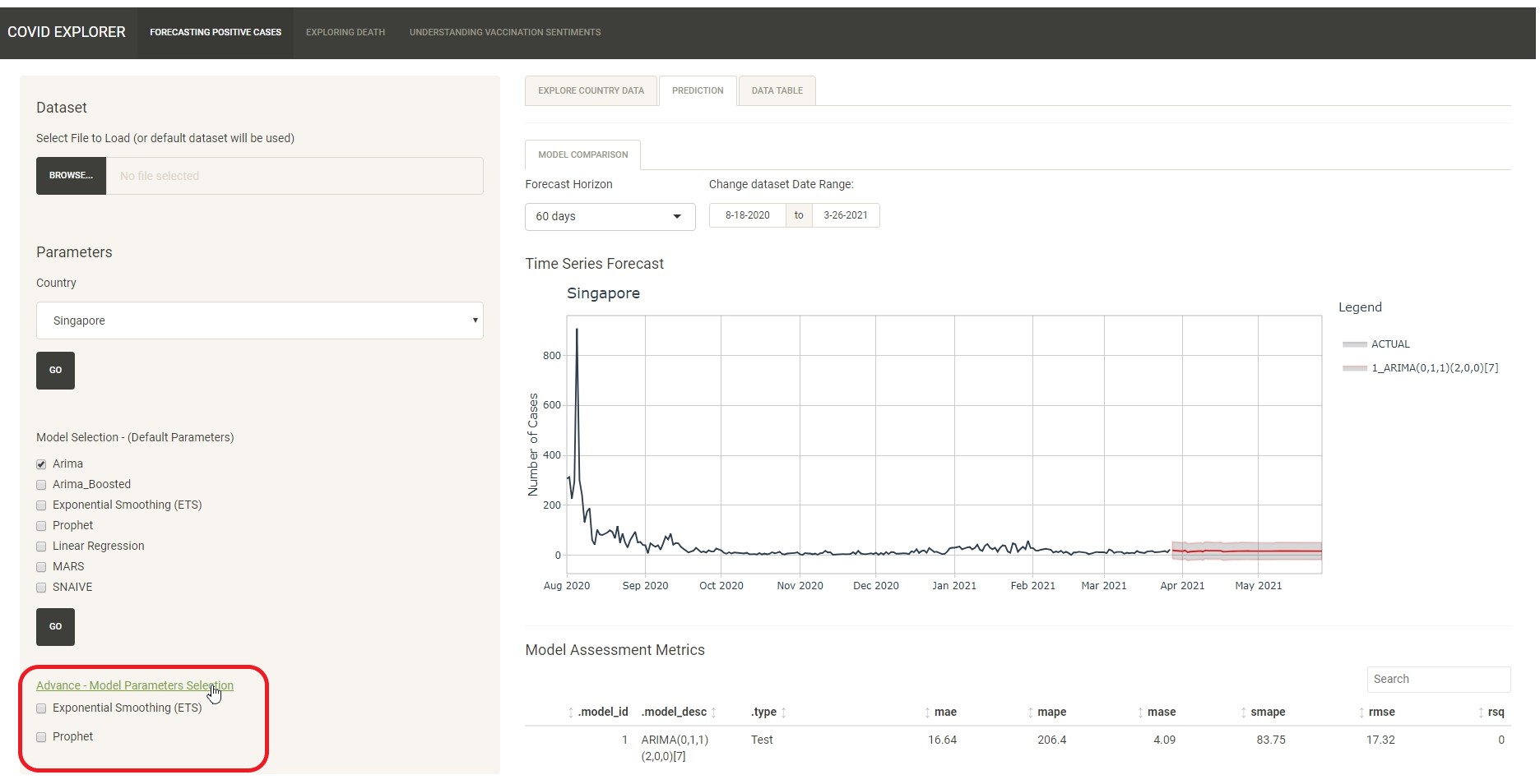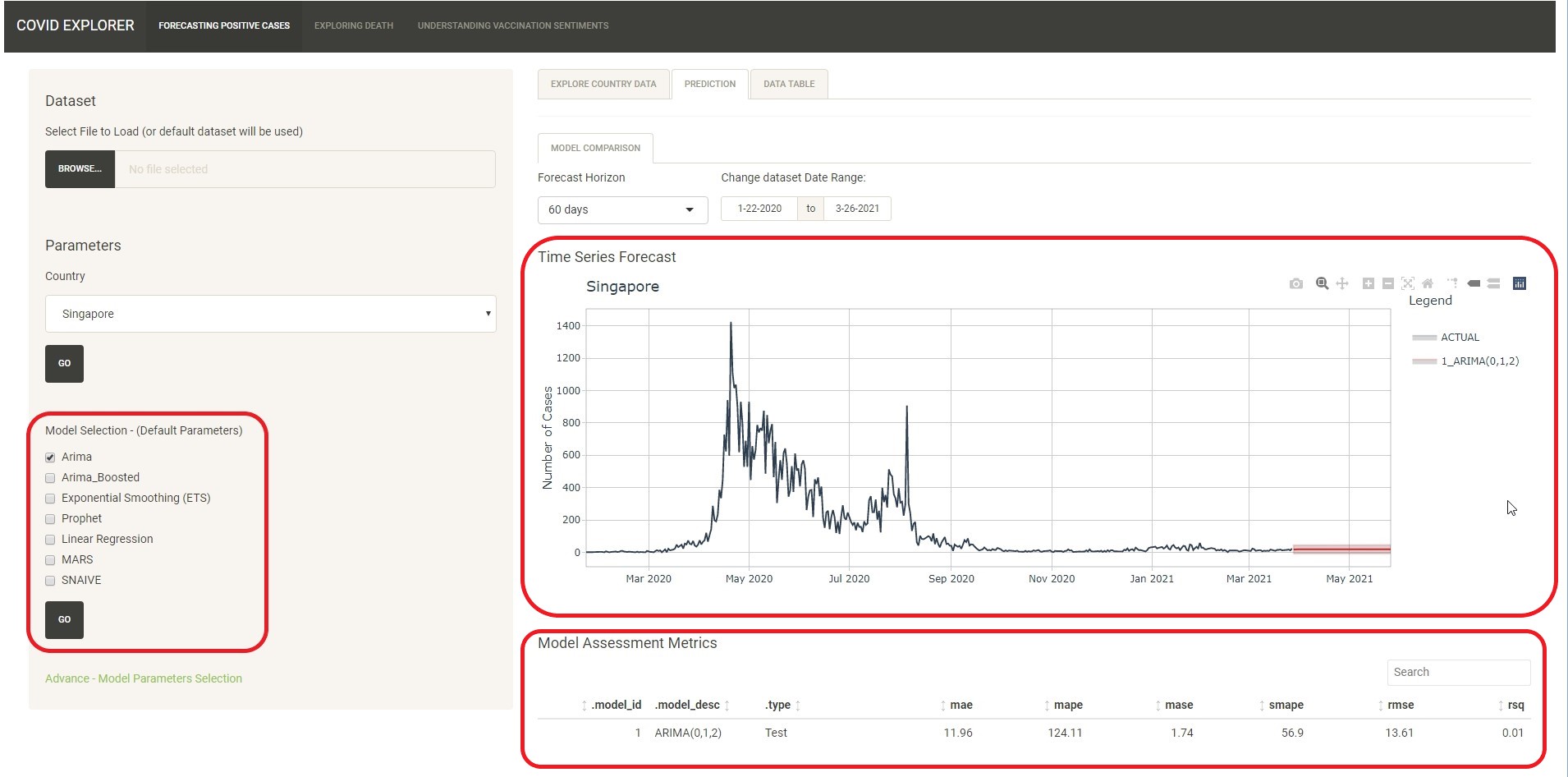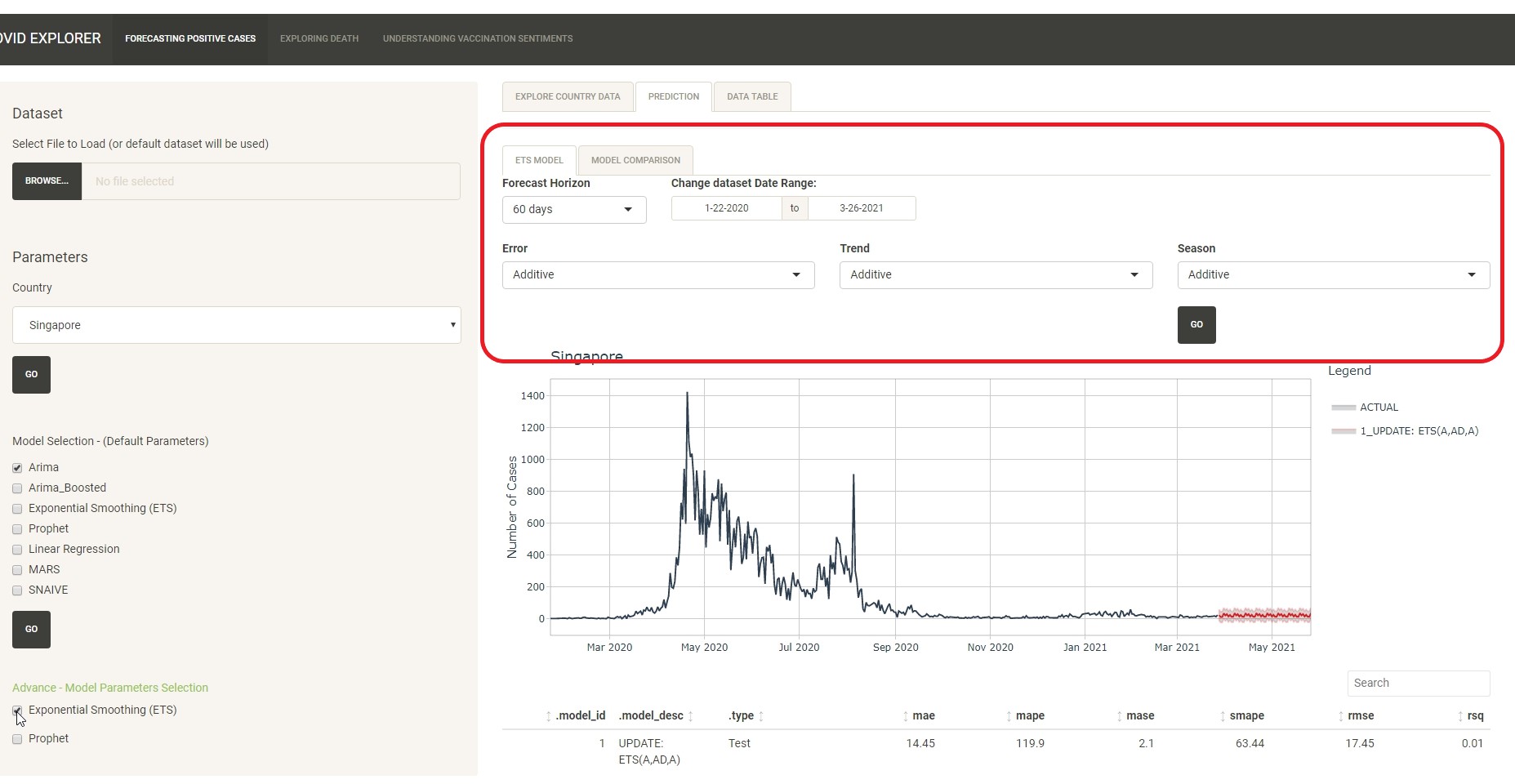 Users can choose the models to do the forecasting. After checking the check box of the model, click on Go. The application will calculate the forecast using the dataset and its predefined parameters.