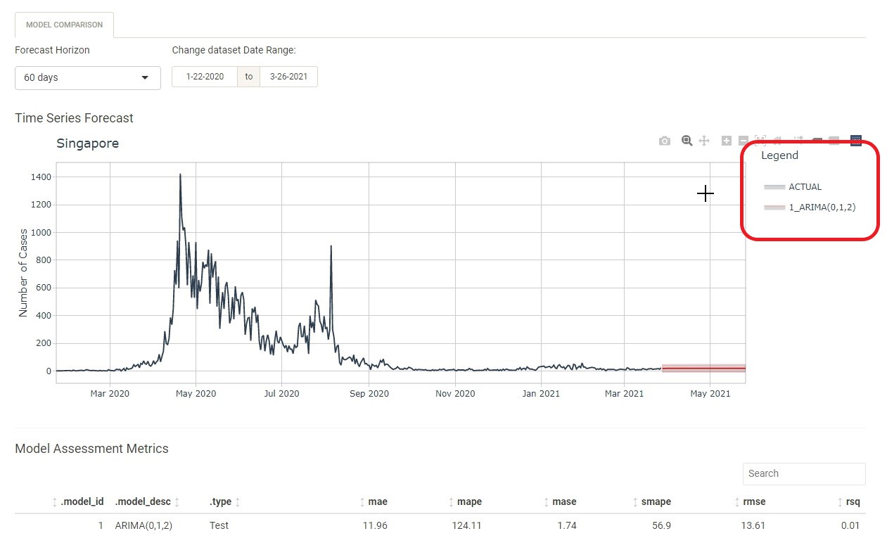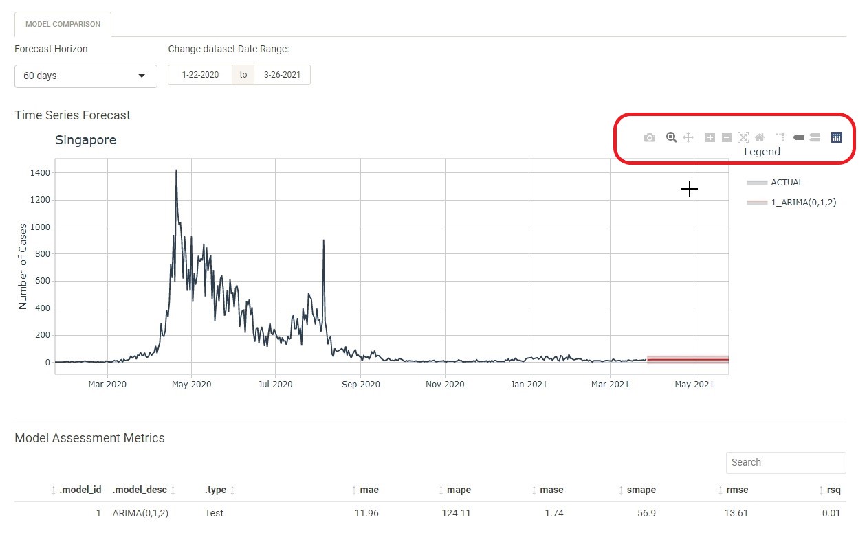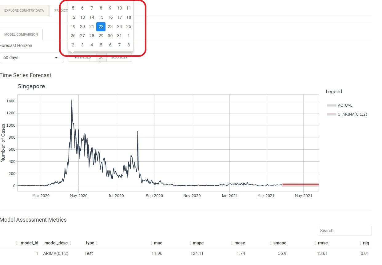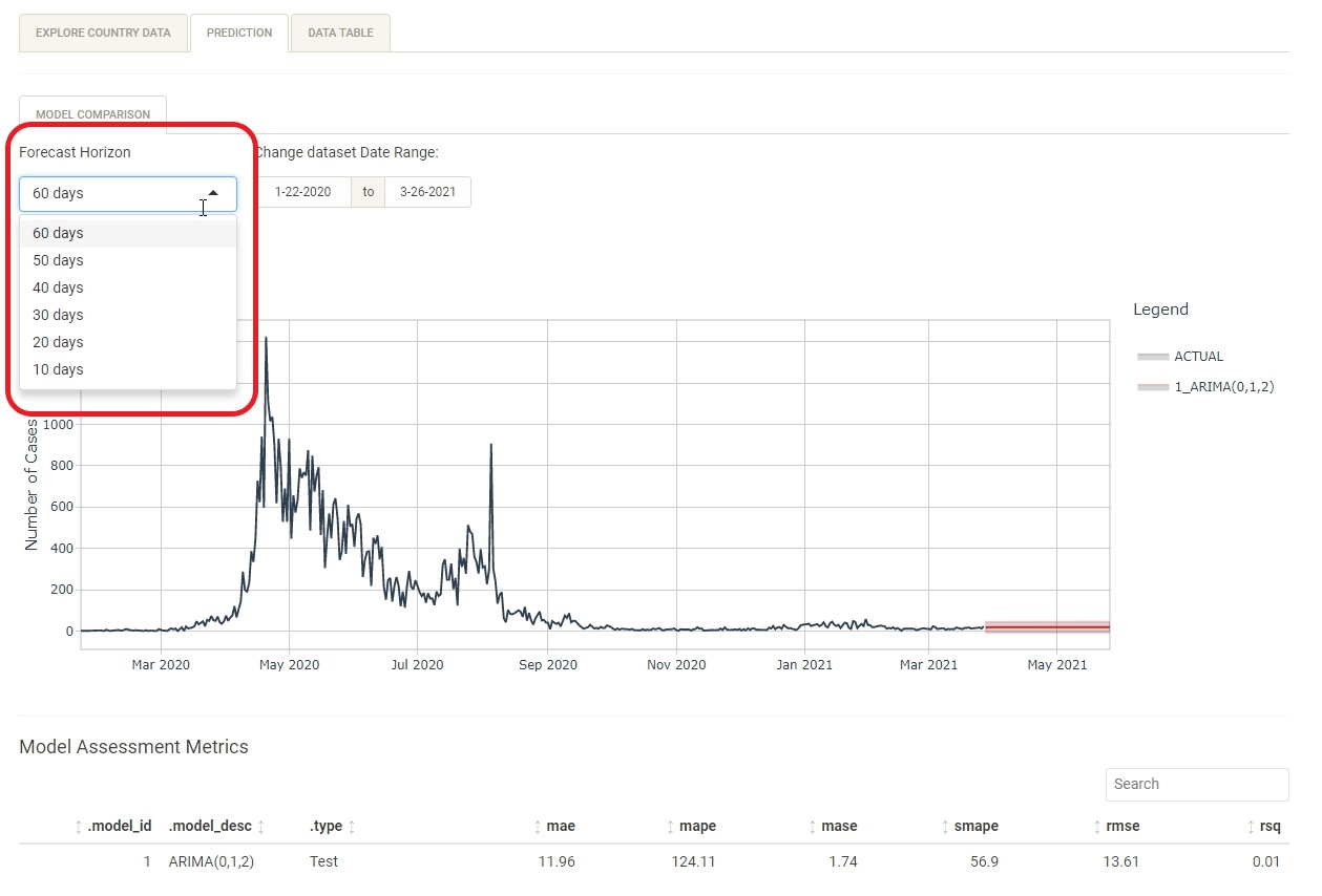 Users can choose the models to do the forecasting. After checking the check box of the model, click on Go. The application will calculate the forecast using the dataset and its predefined parameters.