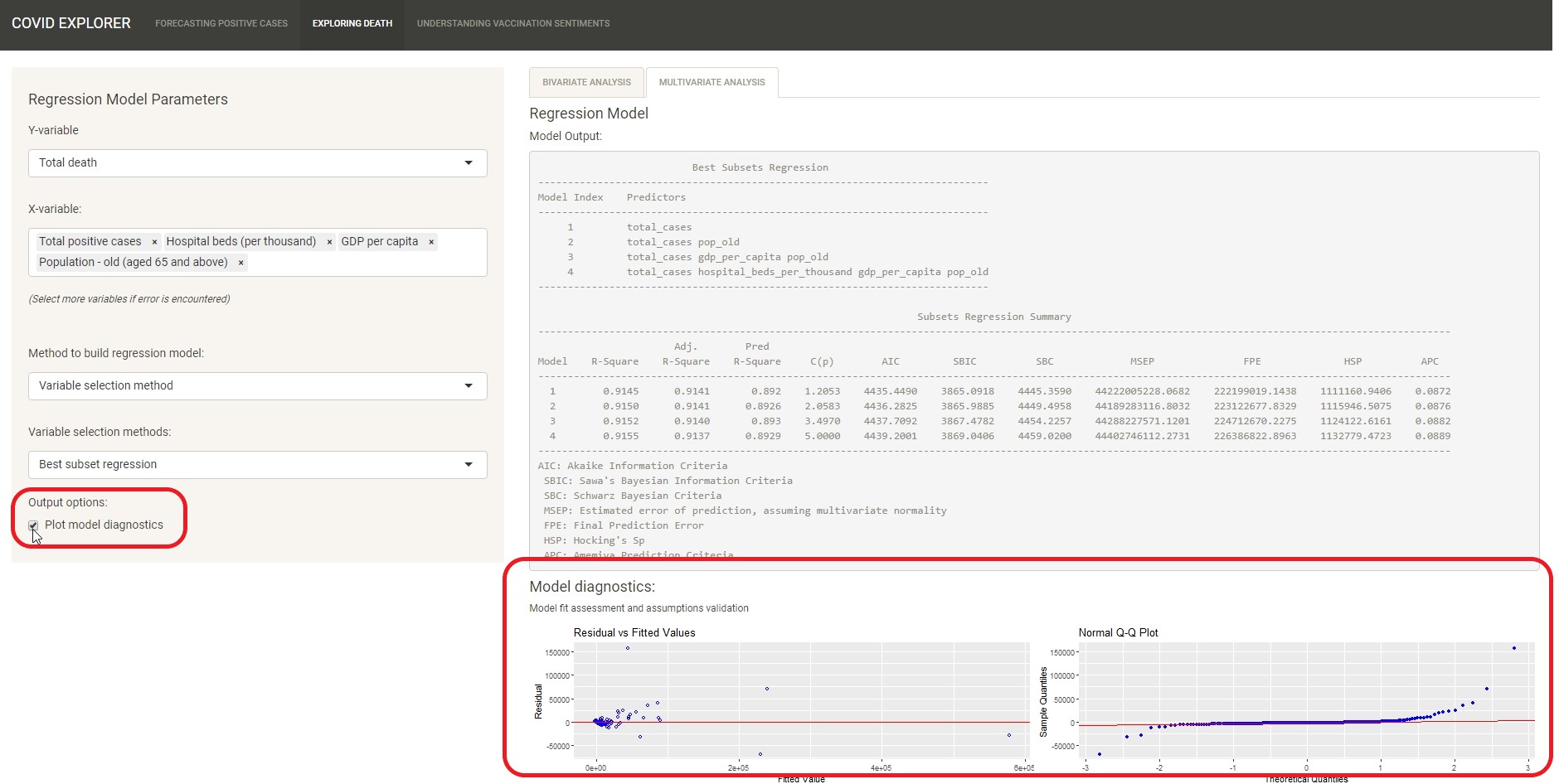 5. Checking the “Plot Model Diagnostic” checkbox, will have additional output on the main panel.