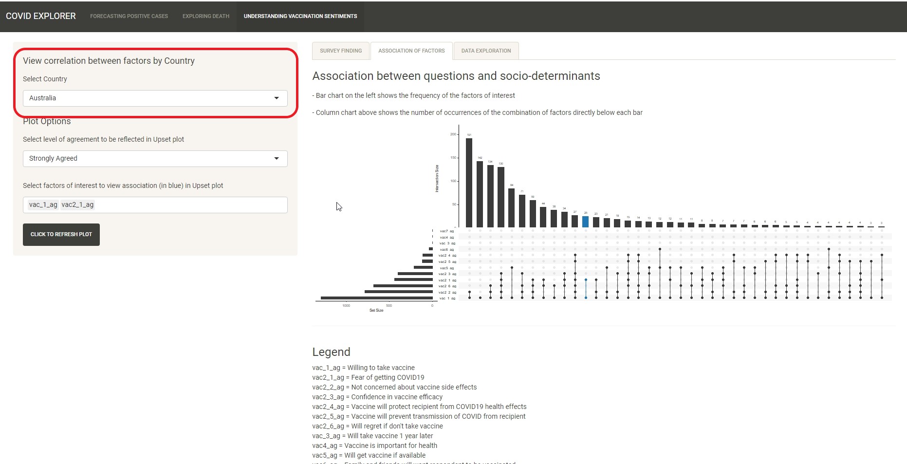 Users are select the country to be plotted. An UpSet-plot would be plotted.