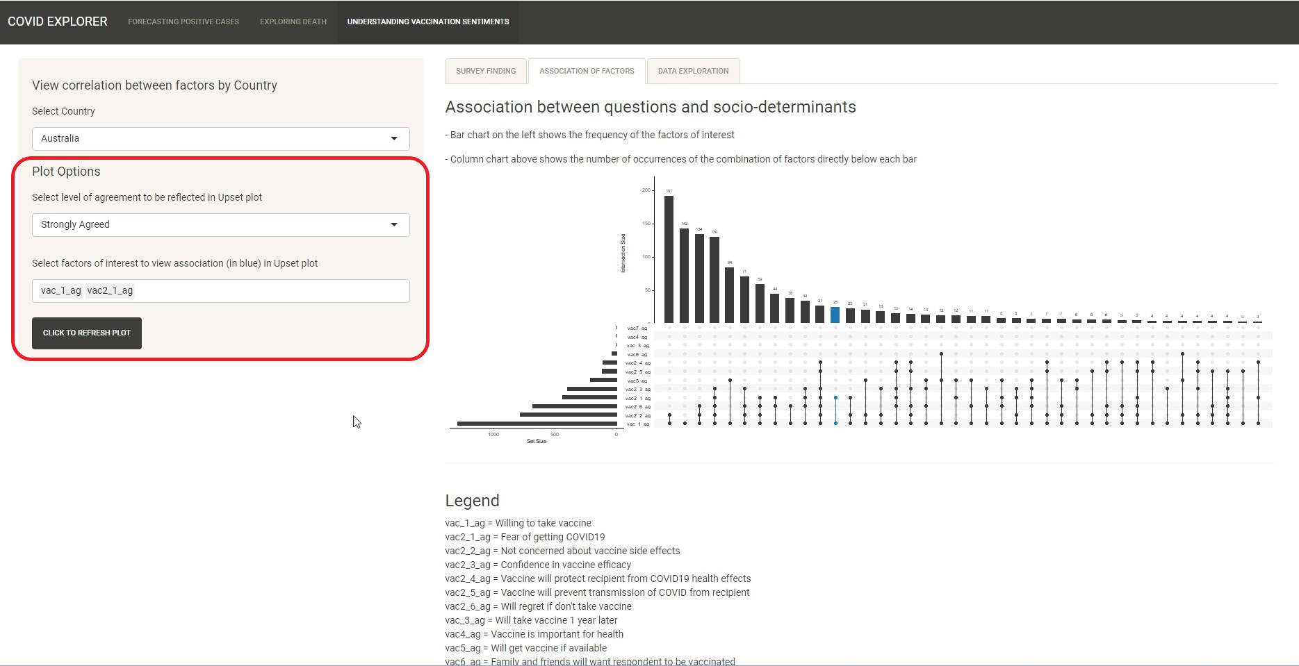 3. Users can change the “Level of Agreement” and “Factor of Interest” in the plot option to better explore the chart. Users can select multiple variables under “Factor of Interest” for display.