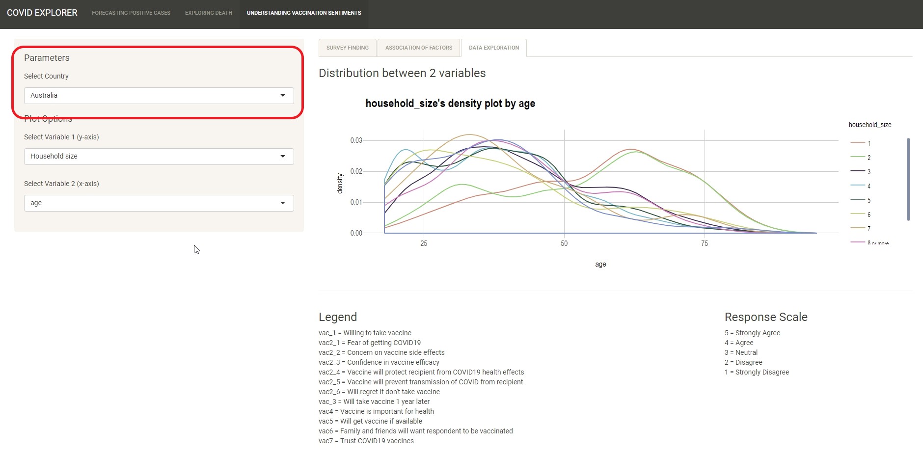 As per previous tab, Users are able to upload the dataset to be explored and choose the country.